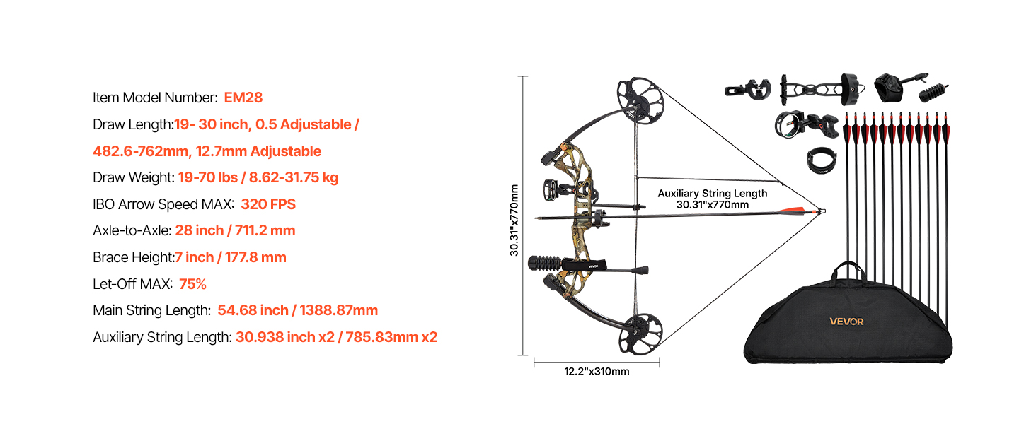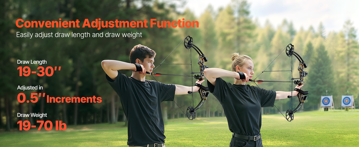 Dĺžka a hmotnosť náťahu sa dajú ľahko prepínať, čo umožňuje začiatočníkom aj skúseným lukostrelcom rýchlo nájsť ideálne nastavenia. Súprava zloženého luku spĺňa potreby rôznych ľudí a situácií.