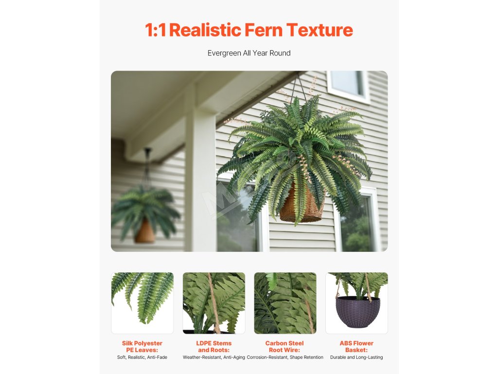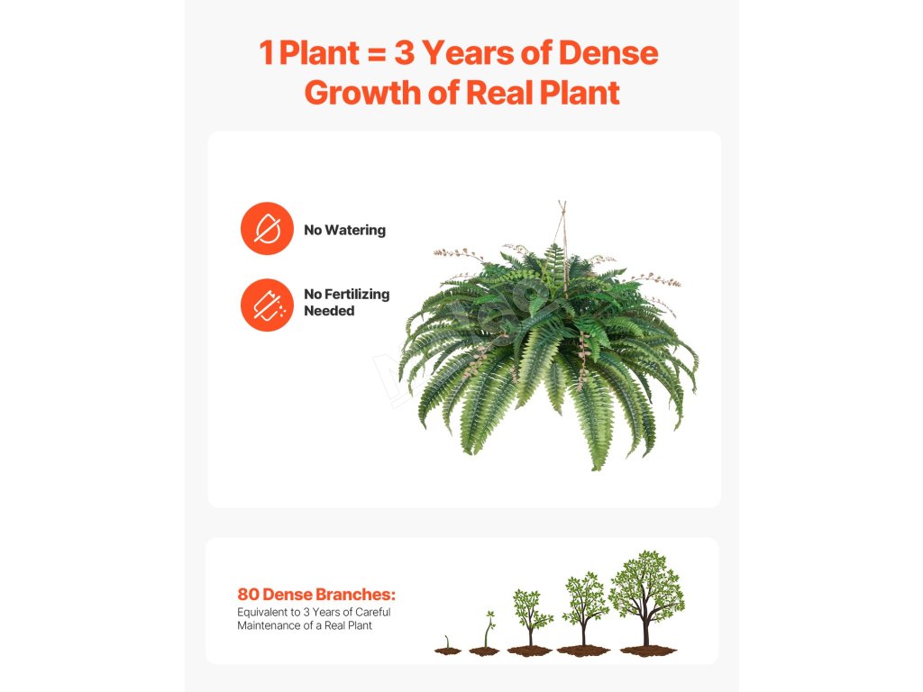 Rozlúčte sa s neustálou starostlivosťou a pozdravte sviežu zeleň, ktorá vydrží! Táto umelá papraď je rovnako hustá a živá ako papraď pestovaná 3 roky. K dispozícii je v rôznych veľkostiach a je ideálna do každého priestoru. Realistické textúry a odolné materiály zaručujú, že vydrží roky bez údržby!