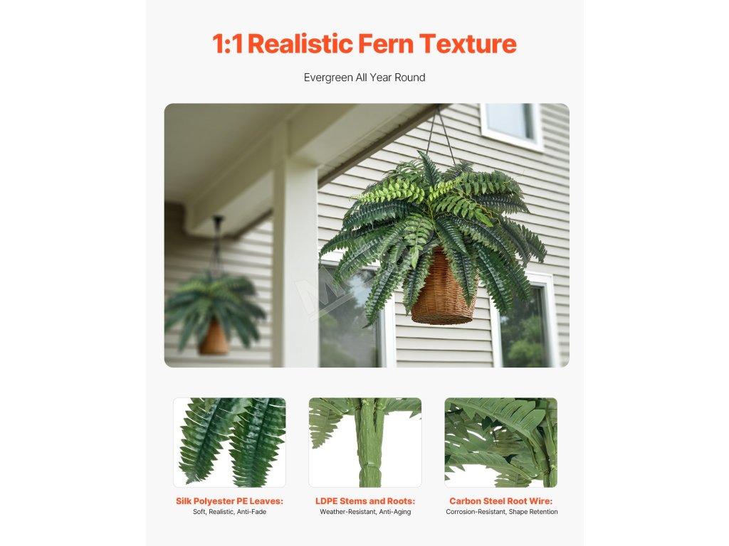 Ponúkame rôzne druhy umelých papradí v rôznych veľkostiach a štýloch, vďaka čomu si môžete vybrať množstvo a dizajn, ktoré vyhovujú interiéru vášho domova.