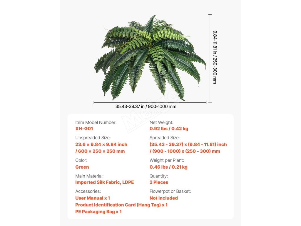 Umelá papraď na zavesenie 2 ks, priemer 35–39 inch, 35 vetiev