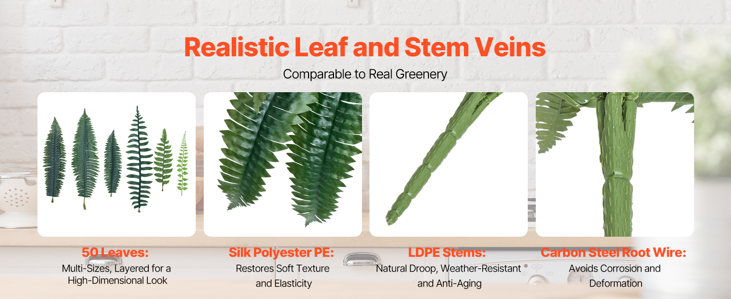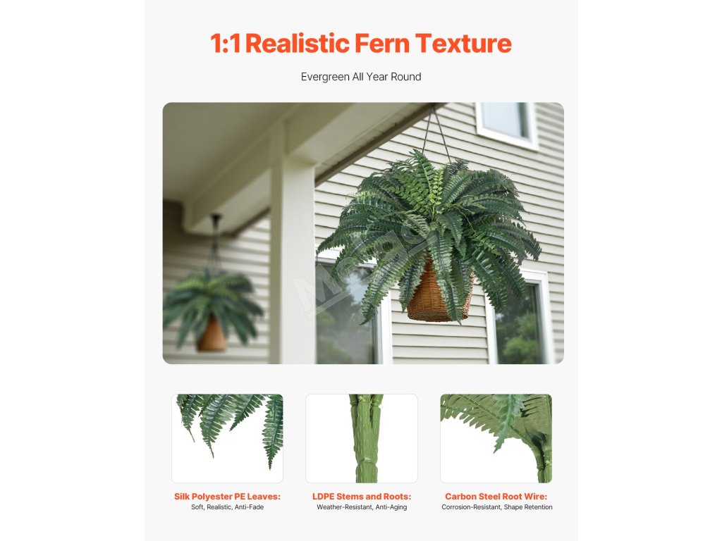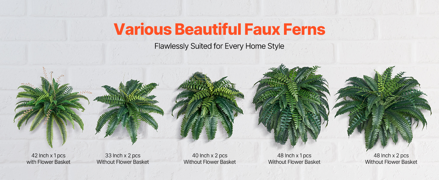 Ponúkame rôzne druhy umelých papradí v rôznych veľkostiach a štýloch, vďaka čomu si môžete vybrať množstvo a dizajn, ktoré vyhovujú interiéru vášho domova.