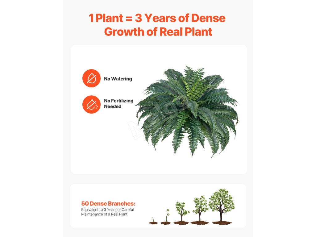 Rozlúčte sa s neustálou starostlivosťou a pozdravte sviežu zeleň, ktorá vydrží! Táto umelá papraď je rovnako hustá a živá ako papraď pestovaná 3 roky. K dispozícii je v rôznych veľkostiach a je ideálna do každého priestoru. Realistické textúry a odolné materiály zaručujú, že vydrží roky bez údržby!
