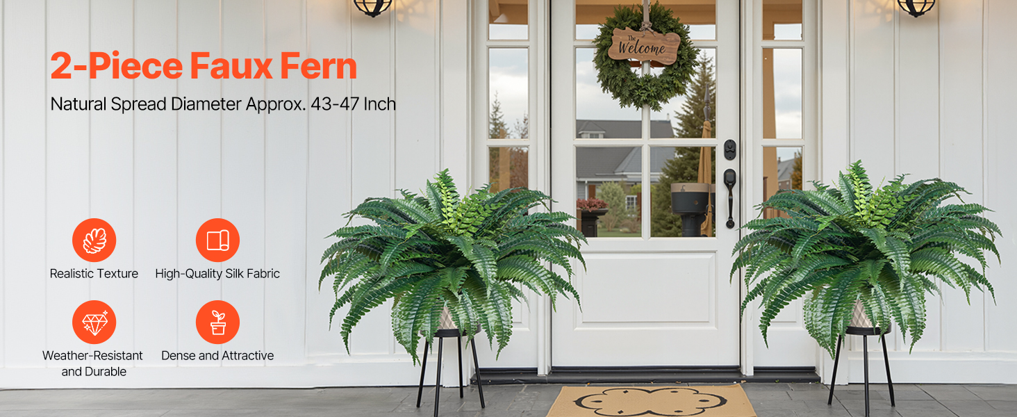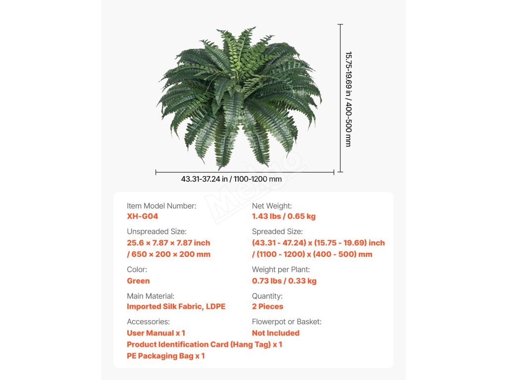 Umelá závesná papraď 2 ks, priemer rozprestretia 43–47 inch, 50 vetiev