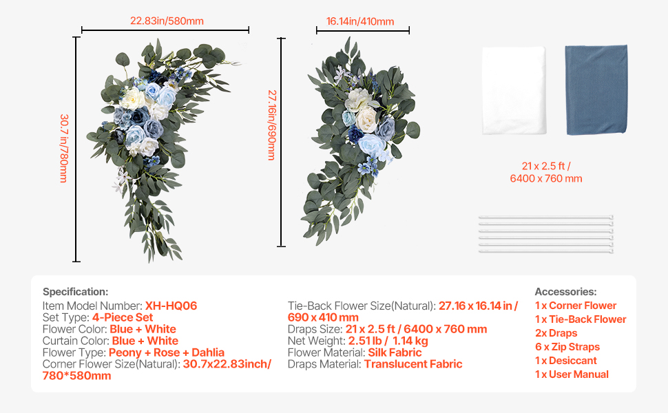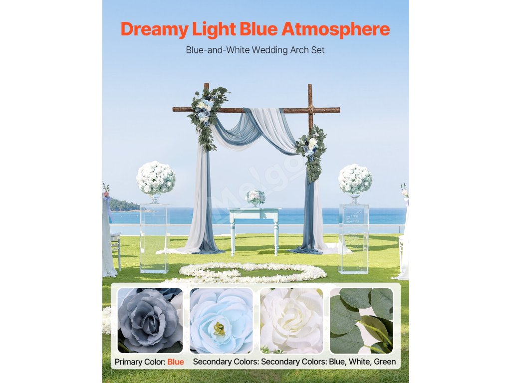 Záves tejto súpravy umelých kvetov na svadobný oblúk s dĺžkou 21 stôp možno zavesiť alebo prevesiť a vytvoriť tak na mieste konania podujatia vrstvy romantiky. Slúži aj ako všestranný dekoratívny prvok, ktorý dodá eleganciu akémukoľvek prostrediu