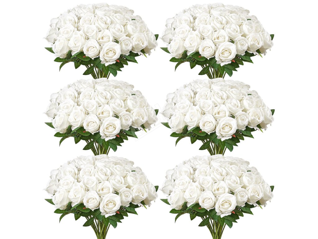 Umelé ruže z peny, 120 ks, biele, so stonkami na svadobné aranžmány