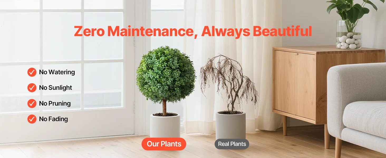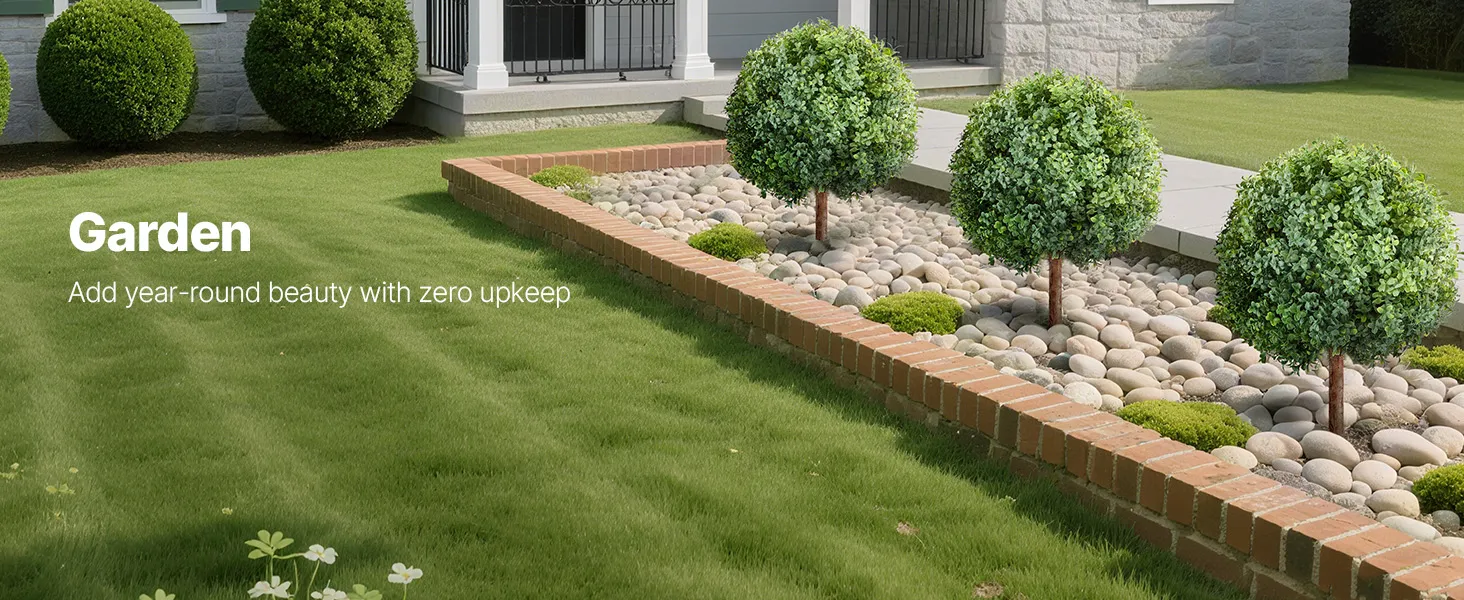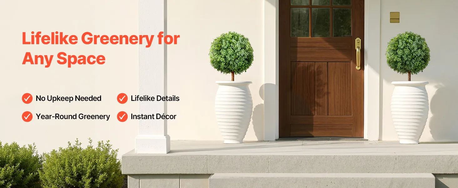 Realistické umelé topiary, ktoré dodajú celoročnú zeleň a štýl každému interiéru alebo exteriéru bez potreby údržby.