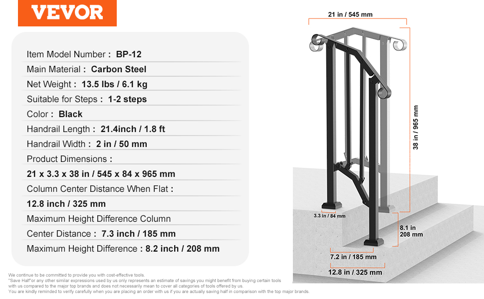 | Dĺžka zábradlia | 21.4 palce / 1,8 stopy |