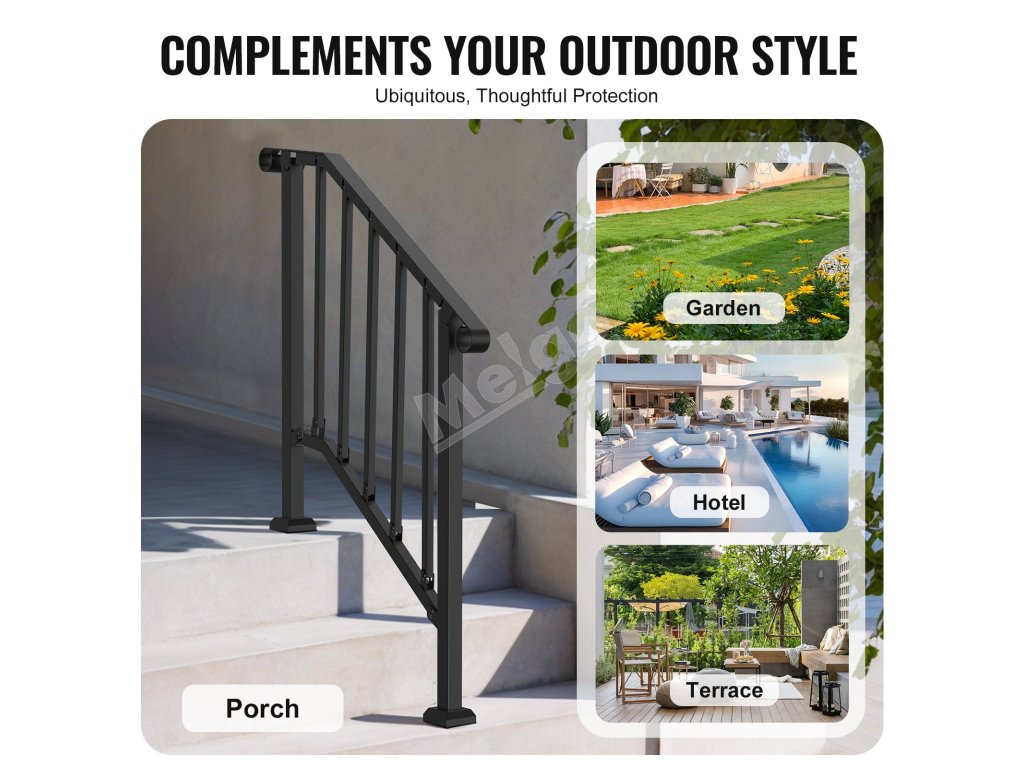 Zábradlie na vonkajšie schody 2–3 stupne, uhlíková oceľ, čierne