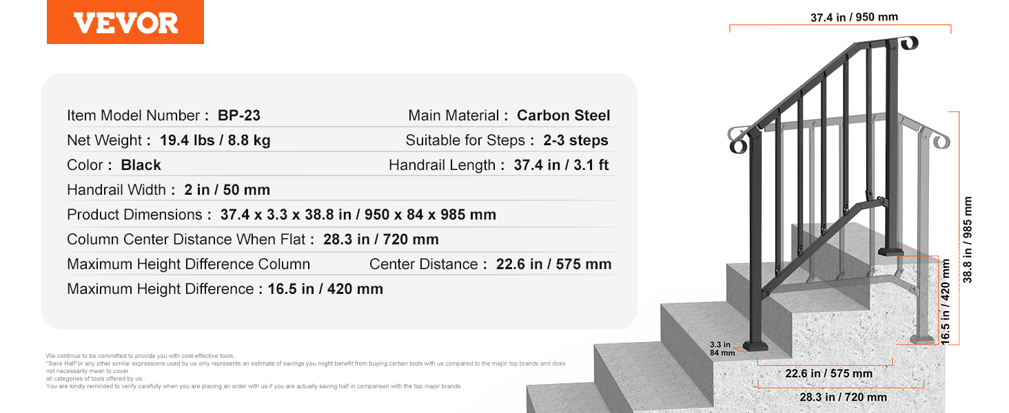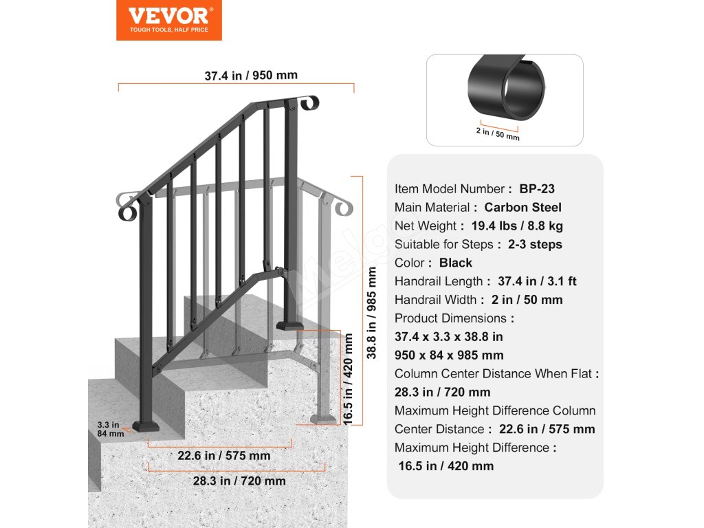 | Dĺžka zábradlia | 37.4 palce / 3,1 stopy |
