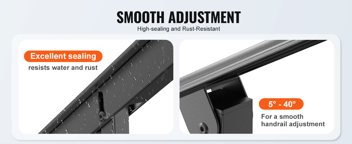 Naše zábradlia sú vyrobené z prvotriednych materiálov a majú vysoko utesnené konektory, ktoré sú odolné voči korózii aj pri vonkajšom daždi. Plynulé nastavenie uhla zaručuje všestrannosť pri rôznych nastaveniach.