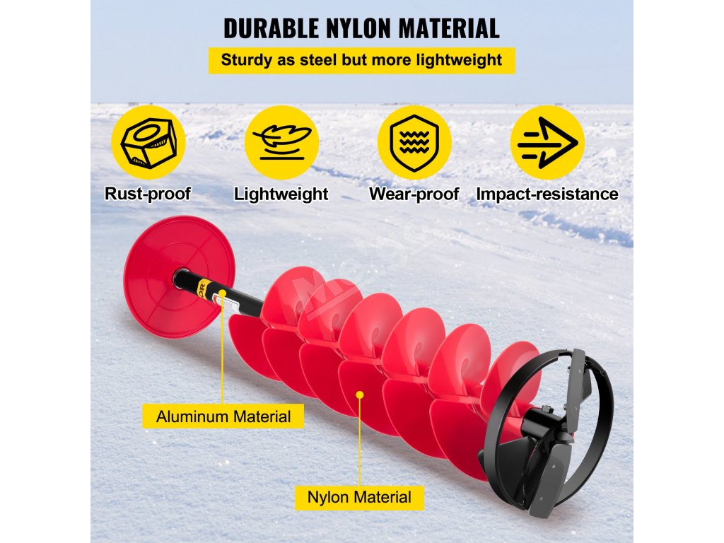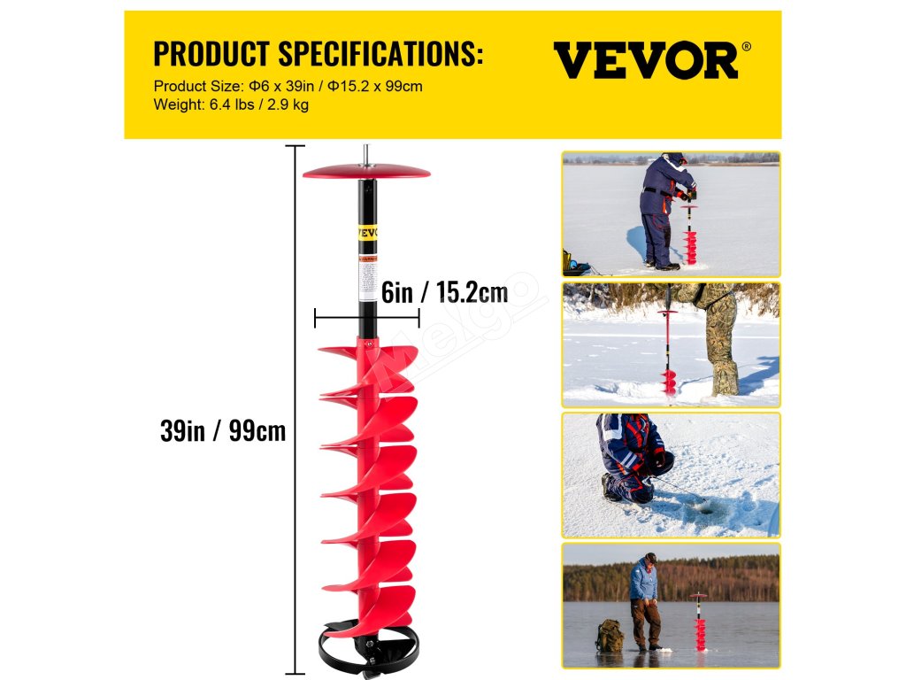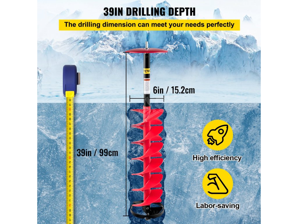 Maximálna hĺbka vŕtania vrtáka do ľadu: 39"; priemer otáčania lopatiek: 6". Vrták je ľahký, ostrý a odolný a dokonale vyhovie vášmu každodennému použitiu.