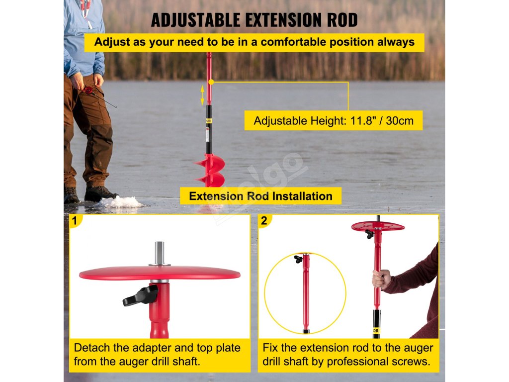 Predlžovacia tyč sa dá použiť na predĺženie dĺžky šneku na ľad. Môžete ju pripevniť k hriadeľu šneku upevnením otvorov pre tyč pomocou špeciálnych skrutiek. Nastaviteľná dĺžka: 11,8"30 cm.