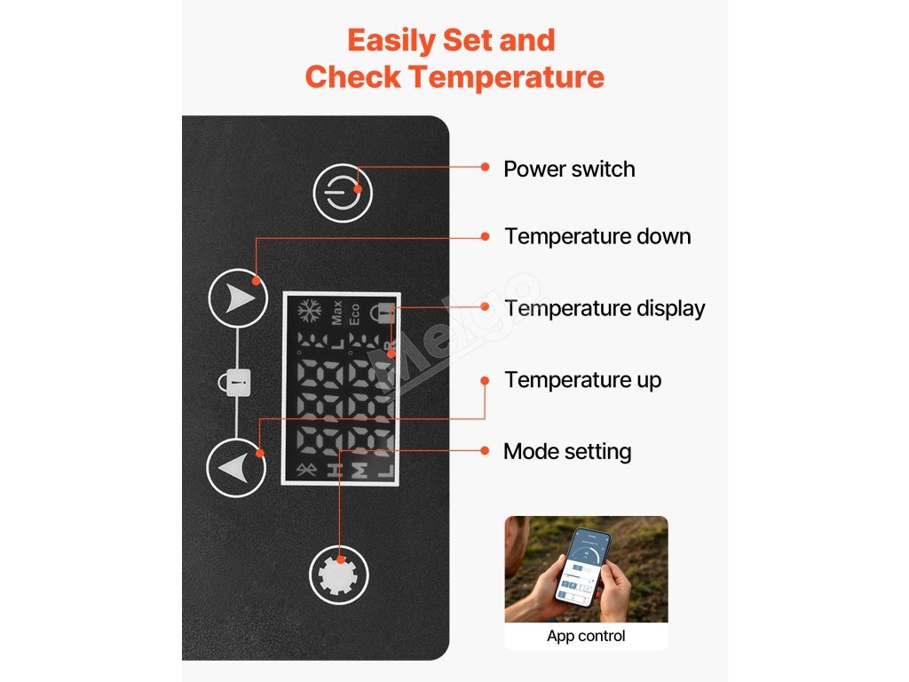 Táto kompresorová elektrická chladnička používa digitálny panel na nastavenie teploty a režimu a zároveň zobrazuje informácie o teplote a spotrebe energie v reálnom čase. Nastavenia môžete tiež ľahko spravovať prostredníctvom mobilnej aplikácie a USB port umožňuje rýchle nabíjanie telefónu počas jazdy.