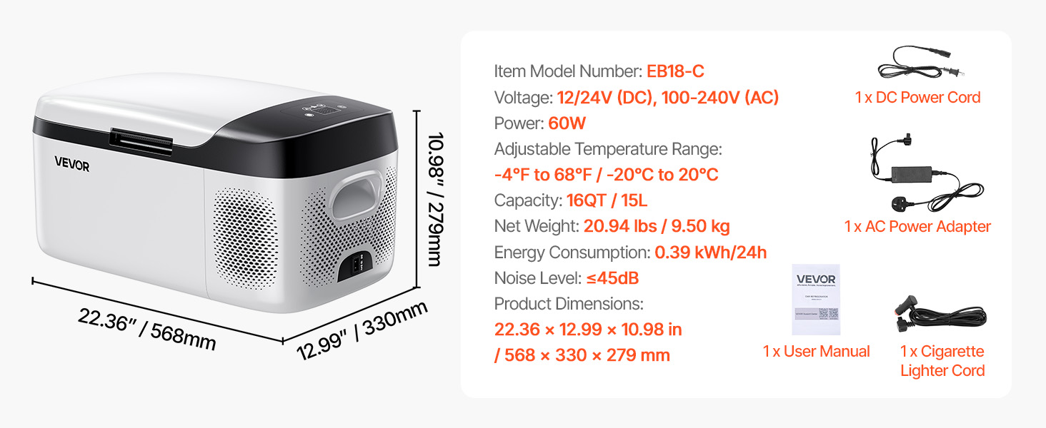 Táto prenosná chladnička do auta udržiava hluk na úrovni 45 dB, vďaka čomu je vhodná na použitie v blízkosti spacích priestorov počas cestovania. Je navrhnutá tak, aby zostala stabilná aj na nerovnej ceste a mohla pokračovať v prevádzke pri naklonení 45°, čo jej poskytuje spoľahlivý výkon pri jazde, kempovaní a outdoorových aktivitách.