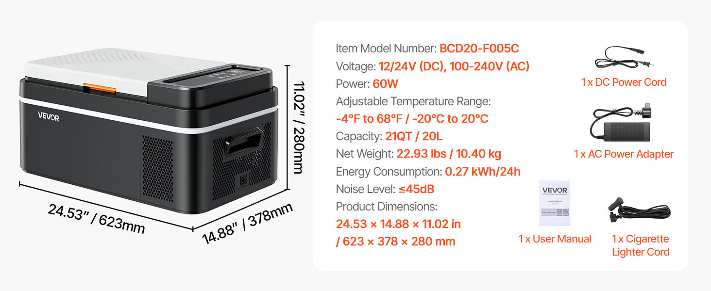 Táto prenosná chladnička do auta udržiava hluk na úrovni 45 dB, vďaka čomu je vhodná na použitie v blízkosti spacích priestorov počas cestovania. Je navrhnutá tak, aby zostala stabilná aj na nerovnej ceste a mohla pokračovať v prevádzke pri naklonení 45°, čo jej poskytuje spoľahlivý výkon pri jazde, kempovaní a outdoorových aktivitách.