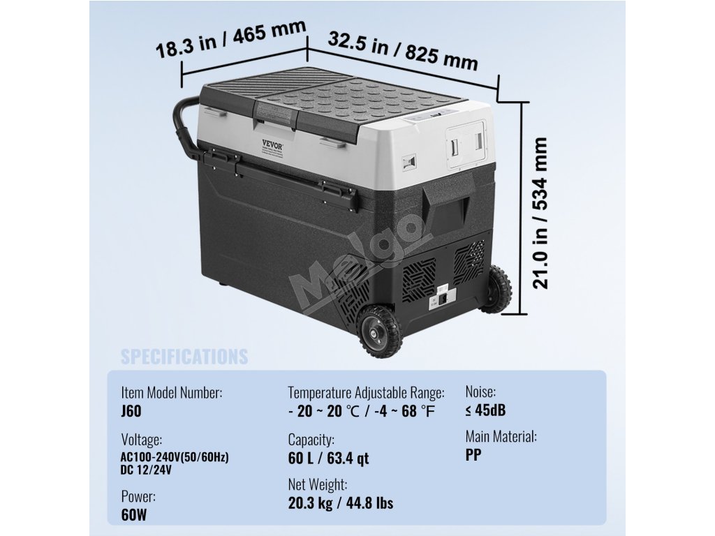 Prenosná autochladnička 12 volt, 60 L / 63.4 QT, -4℉-68℉, kompresor