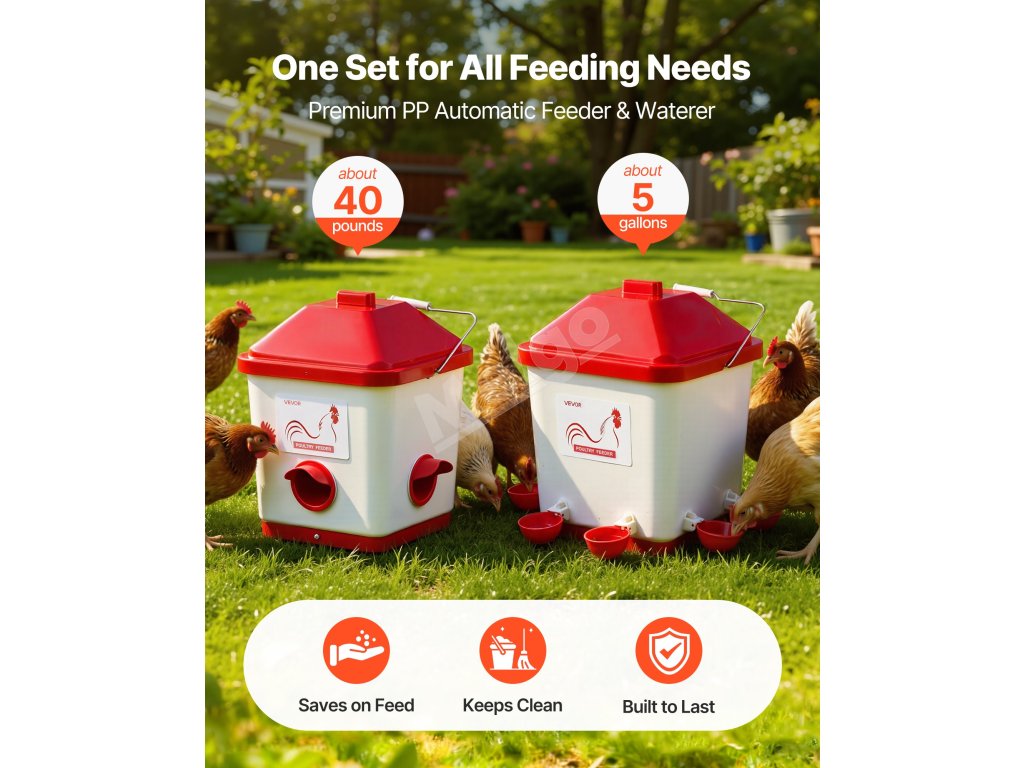 Tento automatický kŕmidlo pre kurčatá obsahuje automatické kŕmidlo s kapacitou 40 libier a automatický napájač s kapacitou 5 galónov, ktoré poskytujú všetko, čo potrebujete na riadenie kŕmenia viacerých hydiny.