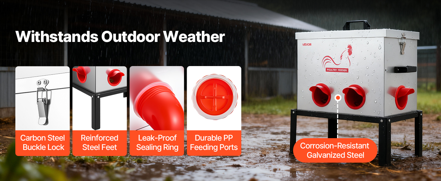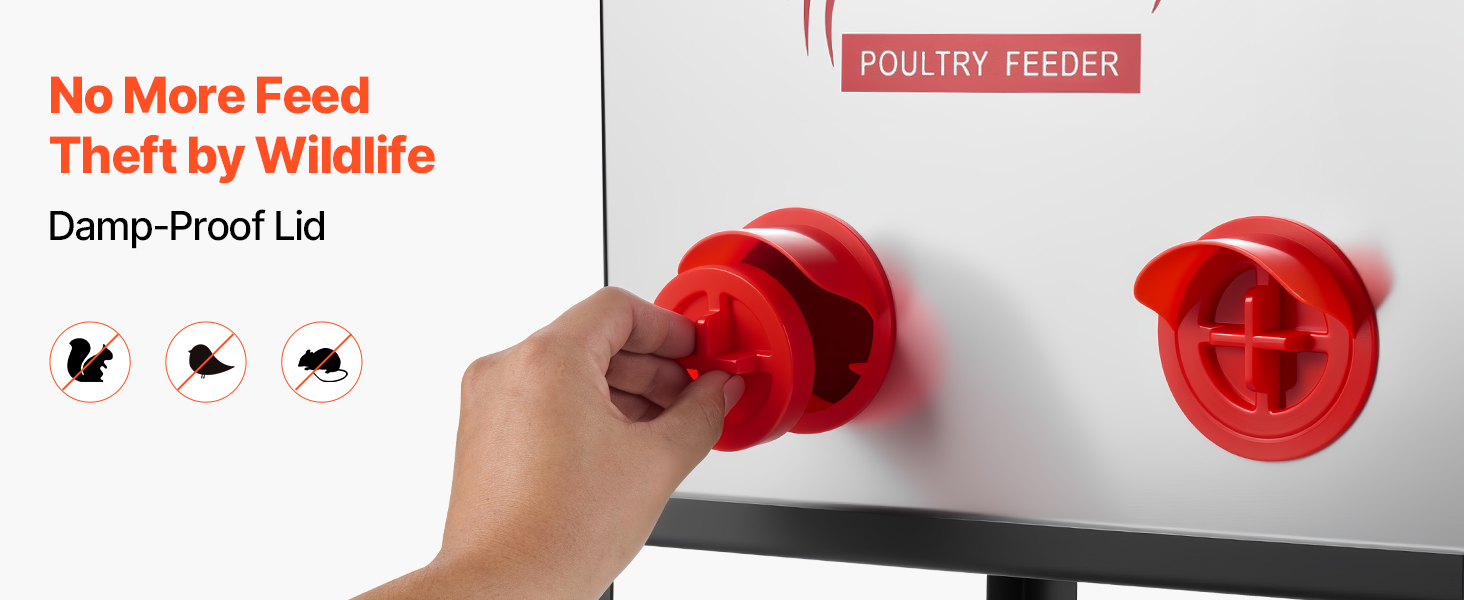 Naše kŕmidlo pre kurčatá sa dodáva s kŕmnymi otvormi s krytmi odolnými proti vlhkosti, ktoré bránia veveričkám, vtákom, hlodavcom a iným zvieratám v kradnutí krmiva. Pomáha znižovať straty krmiva vo vonkajšom prostredí a zabezpečuje, aby vaše krmivo zostalo v bezpečí.