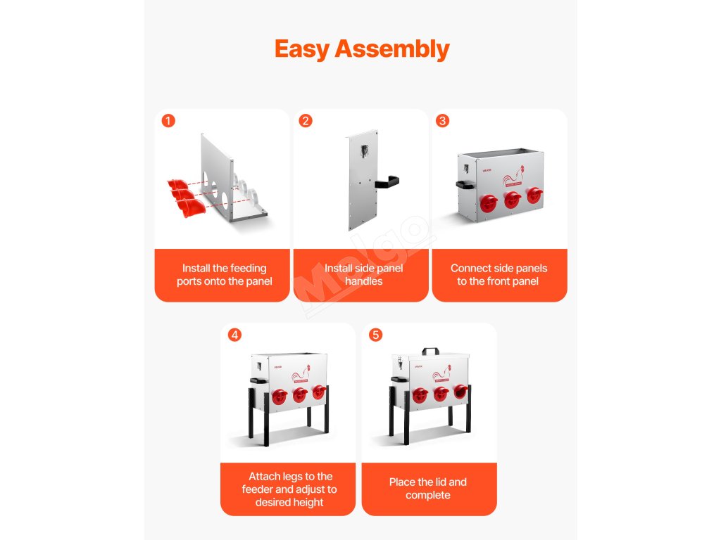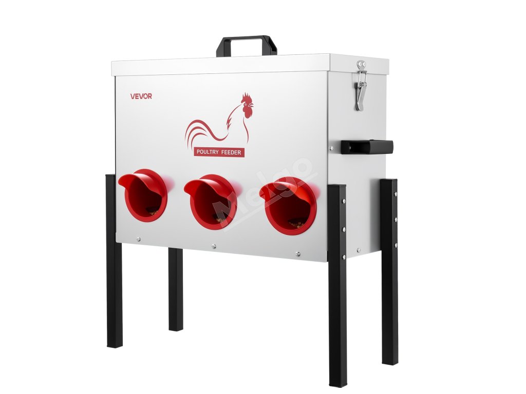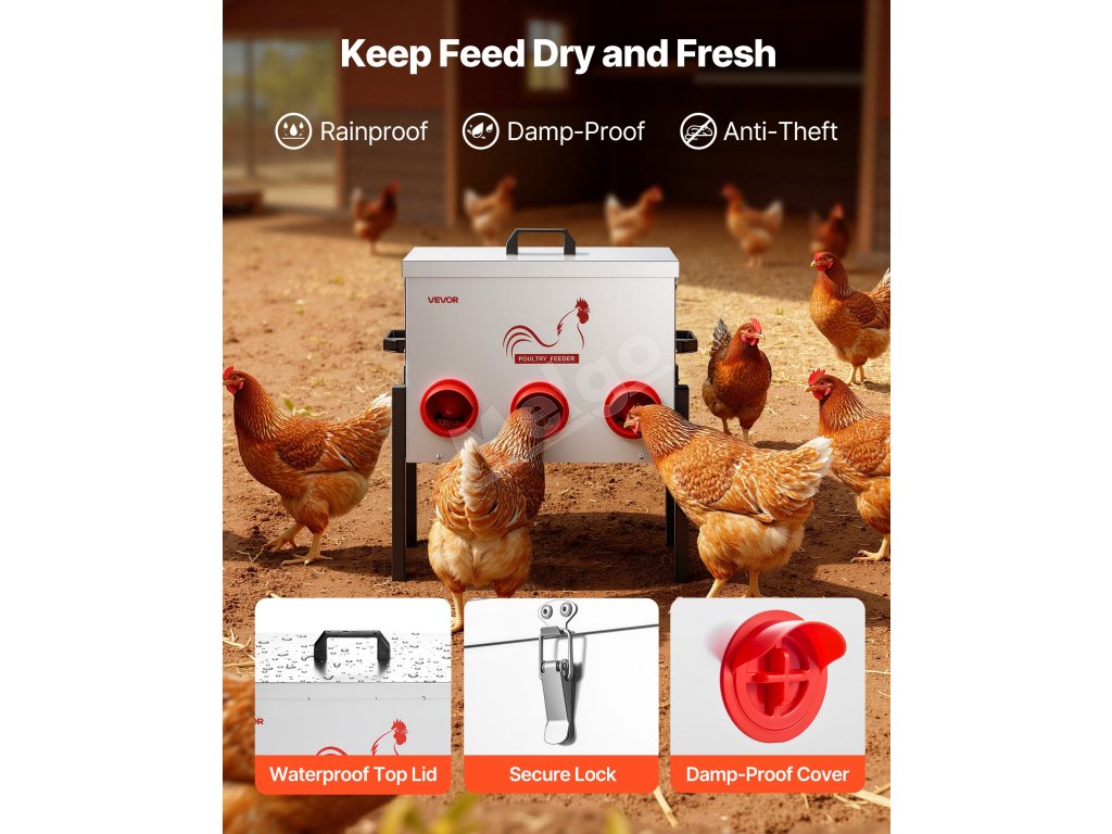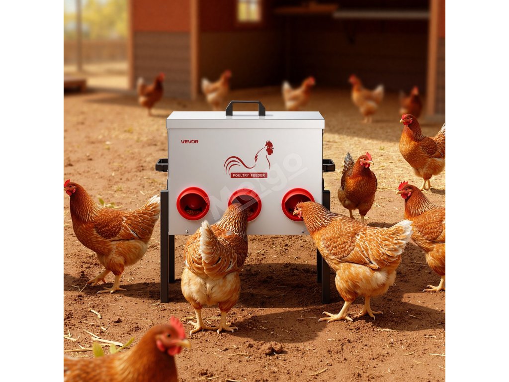 Naše automatické kŕmidlo pre kurčatá je vyrobené z kvalitnej pozinkovanej ocele a PP materiálov a odoláva korózii a hrdzi aj pri dlhodobom používaní vonku. Je vybavené tesniacim krúžkom odolným proti vlhkosti, vďaka čomu udrží vaše krmivo suché a čerstvé, čím zaručuje jeho trvanlivosť a spoľahlivosť.