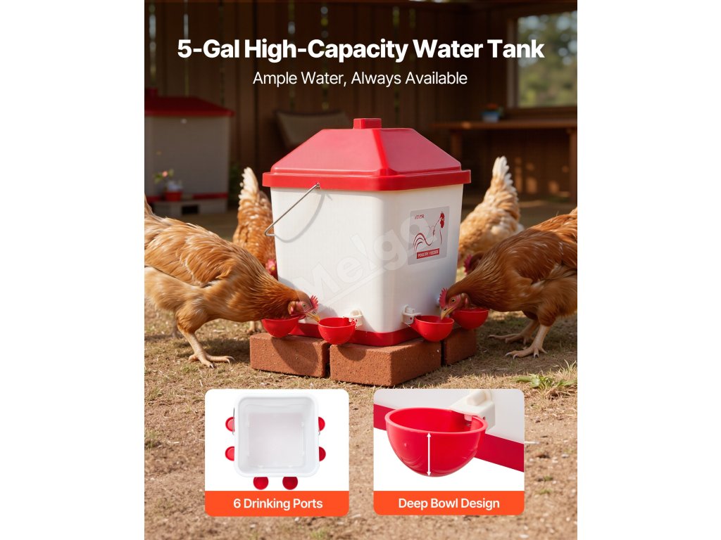 Automatický napájač 19L pre sliepky, 6 vývodov, vodotesný pp materiál