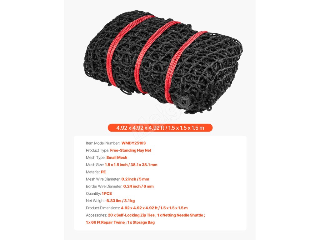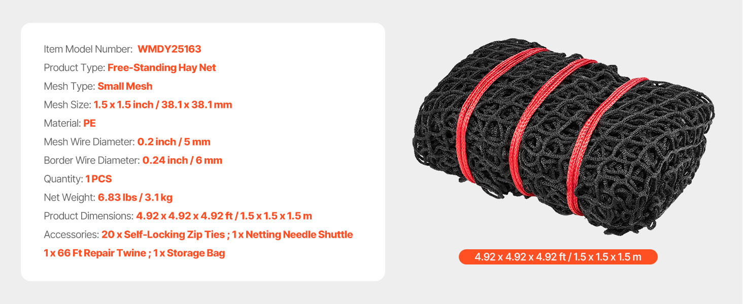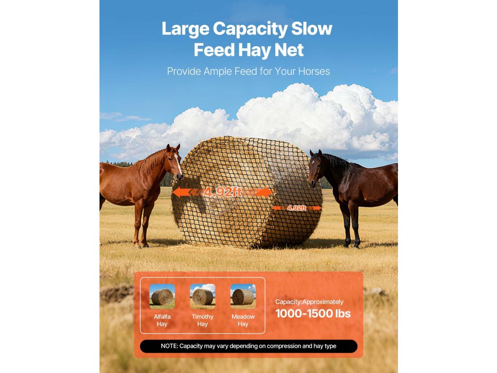 Táto okrúhla sieť na baly s pomalým kŕmením, ktorá má 1,5-palcové oká, je vhodná pre väčšinu koní na každodenné používanie, podporuje postupné kŕmenie, znižuje množstvo odpadu zo sena a podporuje lepšie trávenie.