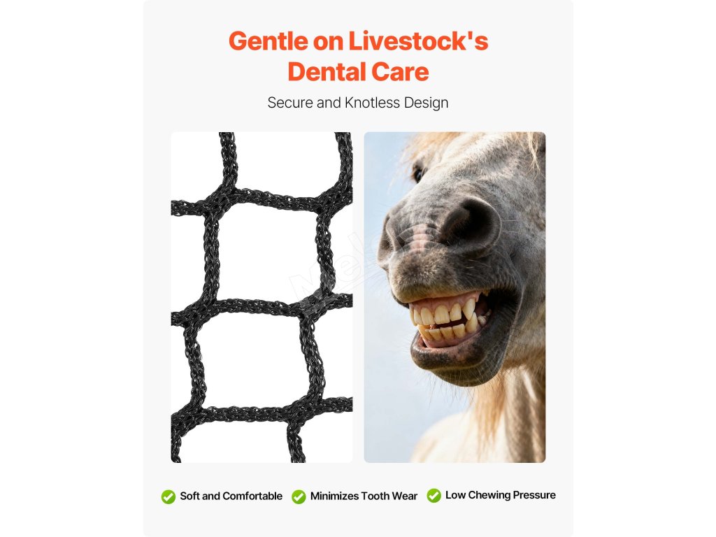 Naša sieť na pomalé kŕmenie okrúhlymi balíkmi sena využíva postupný spôsob kŕmenia, ktorý pomáha koňom vytvoriť si pozitívne návyky pri kŕmení a znižuje úzkosť a odpor. Odporuje stereotypnému správaniu a podporuje trávenie na efektívne dlhodobé kŕmenie.