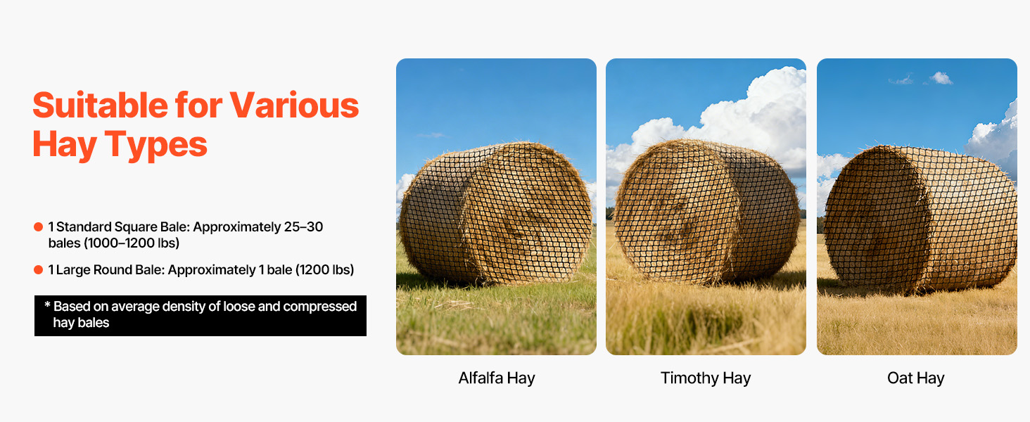 Naša sieť na okrúhle balíky sena sa hodí na rôzne druhy sena vrátane lucerny, timothy a ovseného sena, pričom podporuje štandardné štvorcové a veľké okrúhle balíky na flexibilné kŕmenie a efektívne riadenie chovu hospodárskych zvierat.