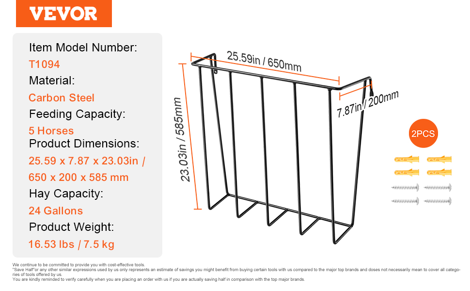 VEVOR 2 balenia podávača sena pre hospodárske zvieratá 24 galónov na stenu