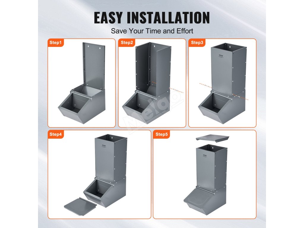 Toto kŕmidlo pre ošípané kombinuje vysokopevnostný materiál, priestorovo úsporný dizajn a veľkú kapacitu 2,2 bušlov pre denné kŕmenie 5 ošípaných. Pozinkovaná oceľ zaručuje odolnosť, zatiaľ čo konštrukcia s valcovaným okrajom zabezpečuje bezpečné kŕmenie ošípaných. Dvierka udržiavajú krmivo v suchu.