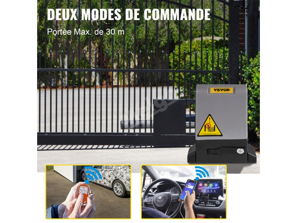 Automatický otvárač posuvnej brány využíva dva režimy diaľkového ovládania pre váš pohodlný prístup. Jedným sú štyri diaľkové ovládače s dosahom až 98 ft/30 m. Druhým je ovládanie brány pomocou telefónnej aplikácie APP, až 100 zariadení, a bránu môžete ovládať odkiaľkoľvek, z domu, z práce, dokonca aj zo zahraničia, pokiaľ je na vašom zariadení dostupný internet.