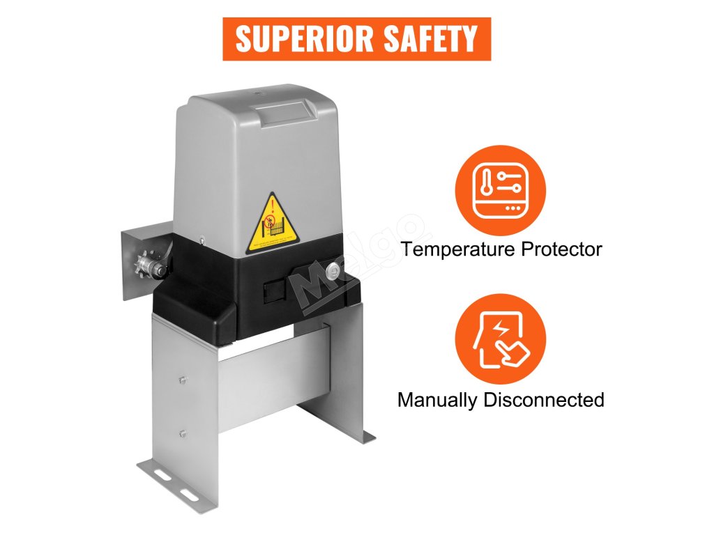 Náš výkonný otvárač posuvných brán dokáže obsluhovať brány s hmotnosťou až do 3300 libier (1500 kg). Navrhnutý s čisto medeným motorom a stabilnou základňou dokáže zabezpečiť, aby otvárač brány otváral bránu hladko rýchlosťou 13 m/min (43 stôp/min) a zároveň produkoval menej ako 56 dB hluku. Stroj je vybavený vodotesným a prachotesným plášťom. Taktiež je odolný voči korózii a hrdzi, čo zaručuje jeho dlhú životnosť.