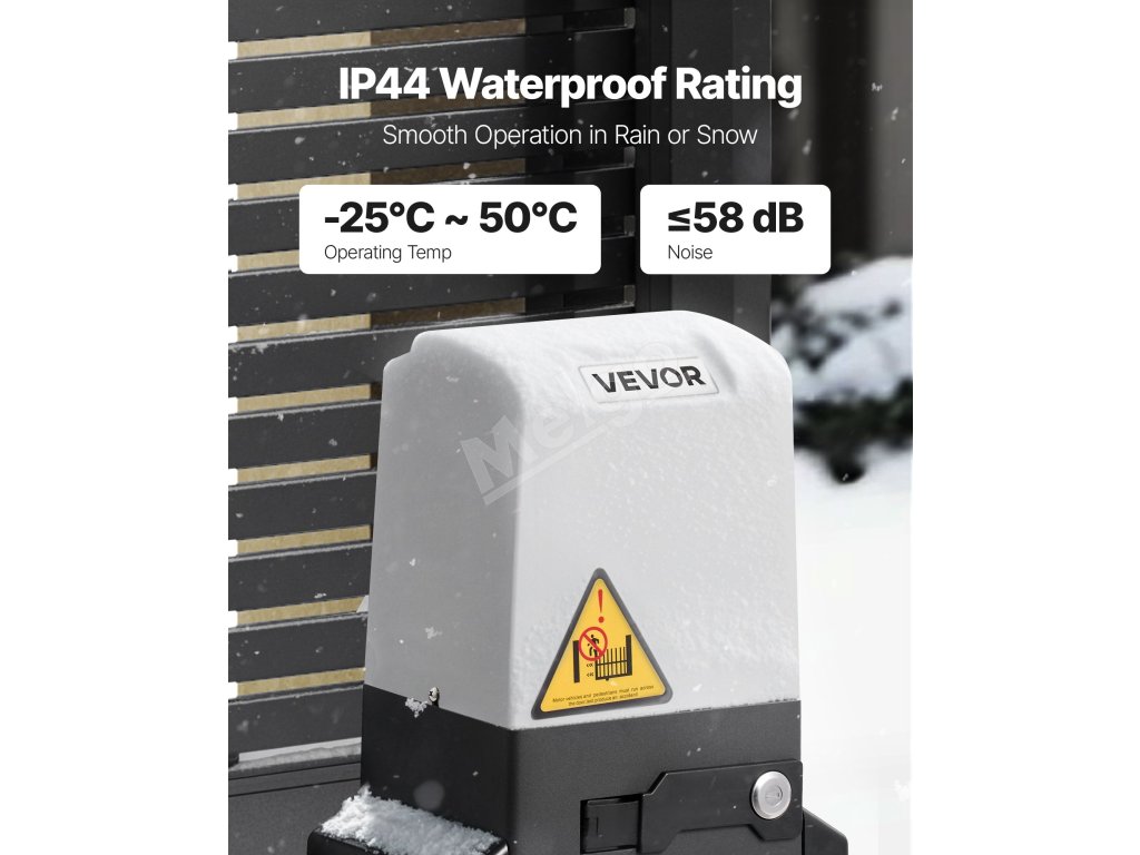 Tento otvárač brán je vybavený 550W motorom z čistej medi, ktorý si poradí s bránami širokými až 82,02 ft / 25 m a s hmotnosťou 3306 lbs / 1500 kg, pričom ponúka plynulú a rýchlu prevádzku (10 m/min), ktorá šetrí váš čas. Vďaka infračervenej technológii automatického snímania zabraňuje kolíziám, čím zaisťuje bezpečnosť vašej rodiny a domácich zvierat.