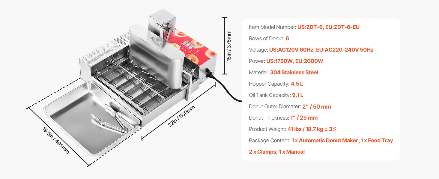 | Hrúbka donutu | 0.6"-1,2" / 15-30 mm |