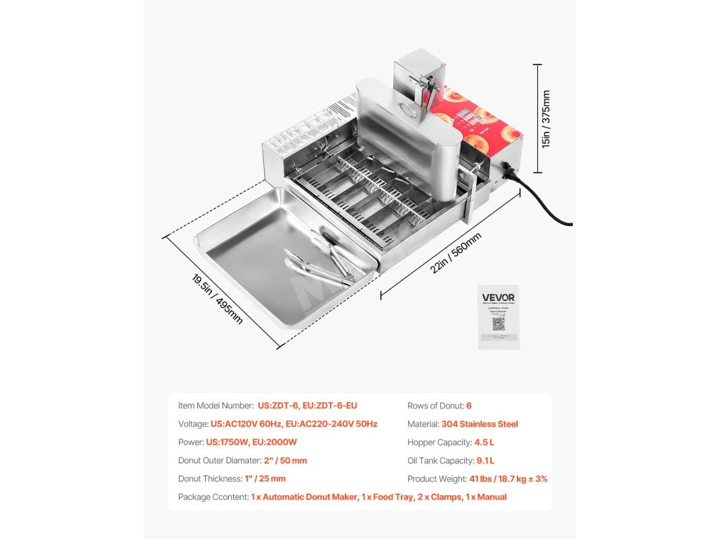 | Hrúbka donutu | 0.6"-1,2" / 15-30 mm |