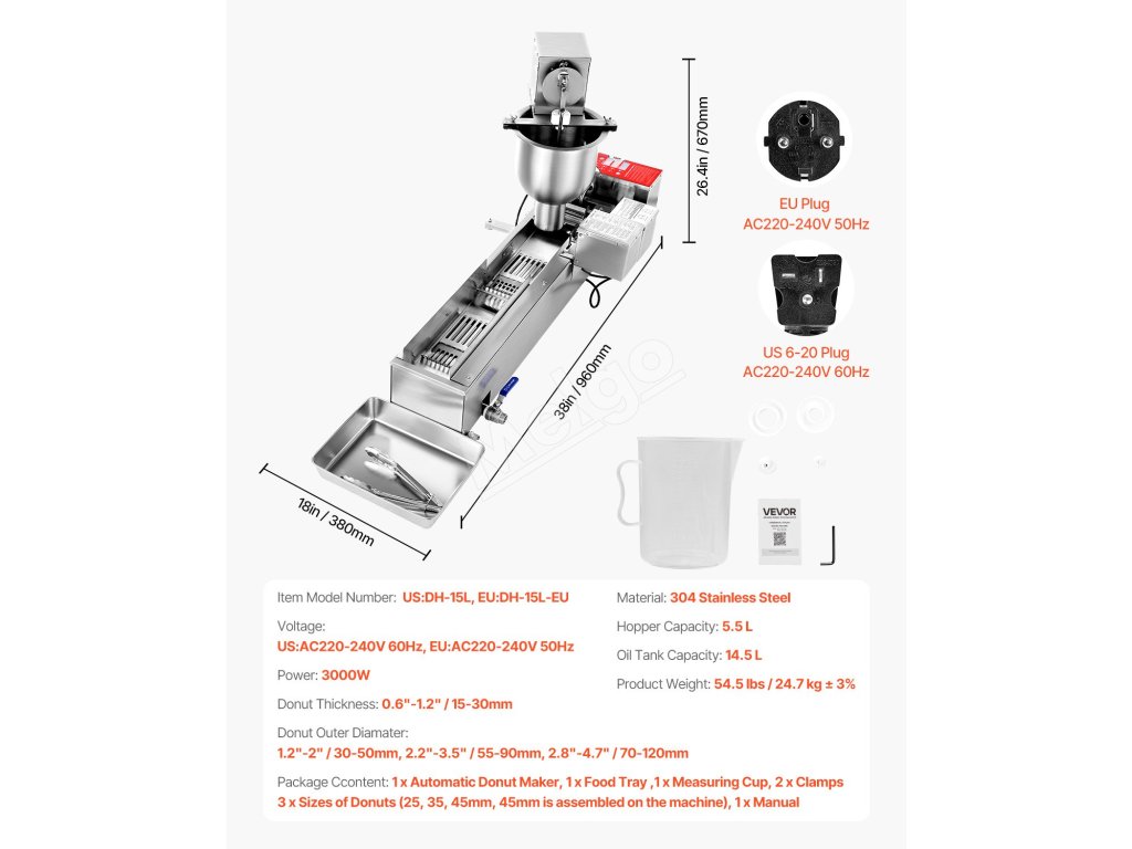 | Hrúbka donutu | 0.6"-1,2" / 15-30 mm |