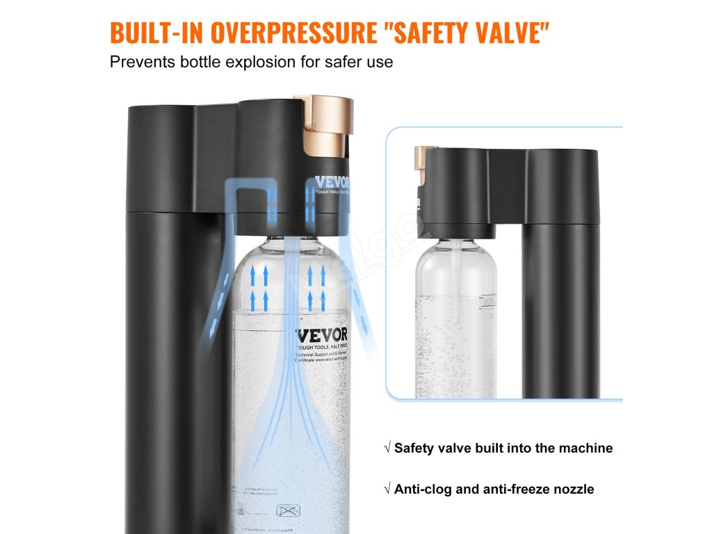 Náš výrobník sýtenej vody a sódy je vybavený automatickým uvoľňovaním tlaku. Stlačením tlačidla sa automaticky uvoľní plyn, čím sa eliminuje potreba ručného uvoľňovania tlaku a zariadenie je bezpečnejšie a pohodlnejšie, takže ho môžu samostatne obsluhovať aj starší ľudia a deti.