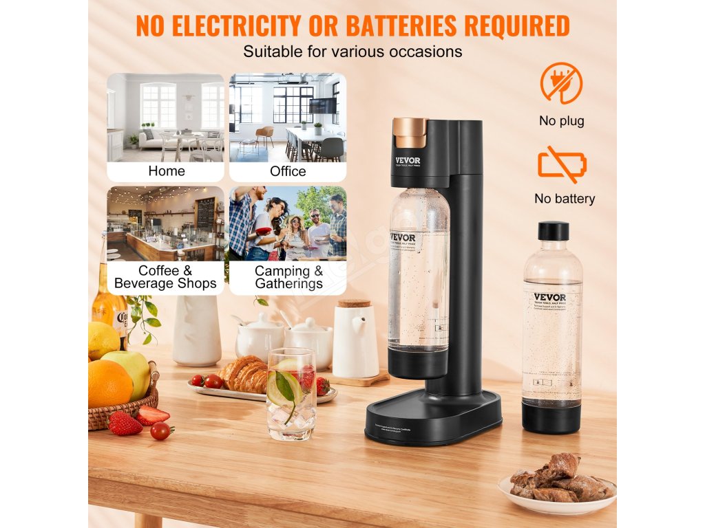 Vychutnajte si pohár sódy počas namáhavej práce a zažite chutný, zdravý a revitalizujúci zážitok bez poškodenia zdravia. Neelektrický dizajn sa bezproblémovo integruje do domácností/kancelárií/obchodov s nápojmi alebo na cestovanie, čím vám zaručuje radosť.