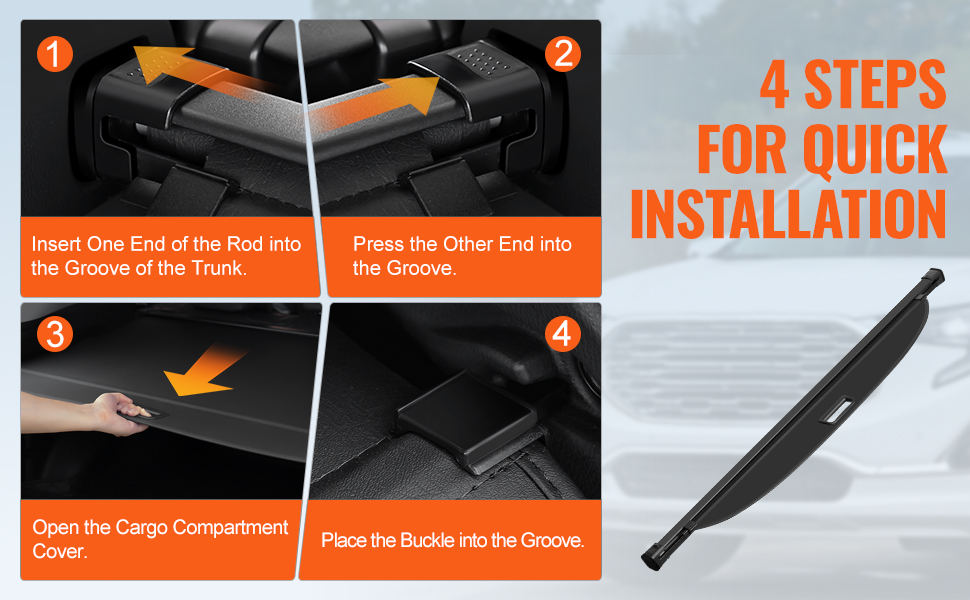 Inštalácia tohto výsuvného krytu kufra je rýchla a jednoduchá. Jednoducho postupujte podľa krokov uvedených v príručke k výrobku a dokončite inštaláciu bez potreby odborného poradenstva. Inštaláciu zvládnu samostatne aj začiatočníci.