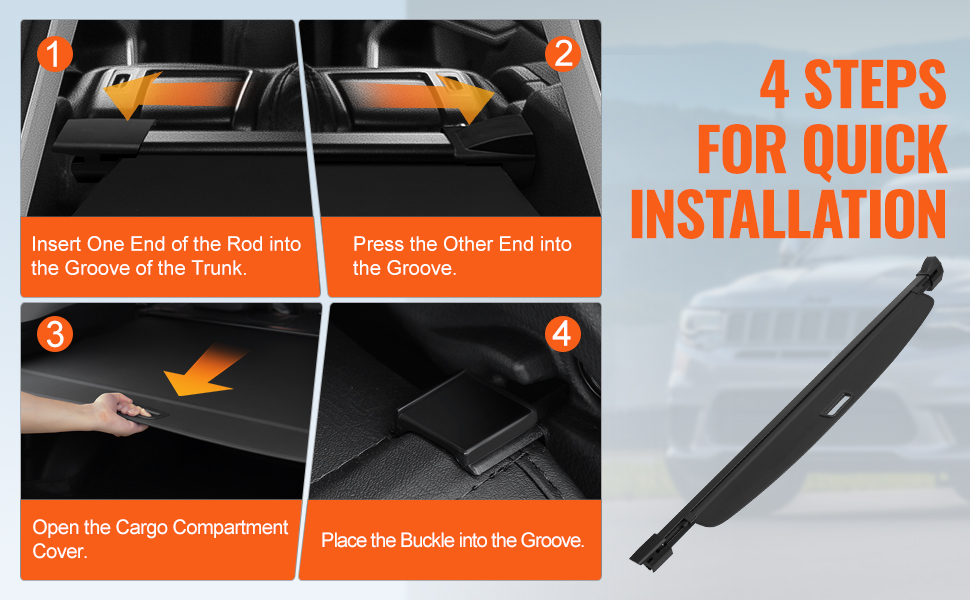 Inštalácia tohto zaťahovacieho krytu kufra je rýchla a jednoduchá. Jednoducho postupujte podľa krokov uvedených v návode na použitie výrobku a dokončite inštaláciu bez potreby odborného poradenstva. Inštaláciu zvládnu samostatne aj začiatočníci.