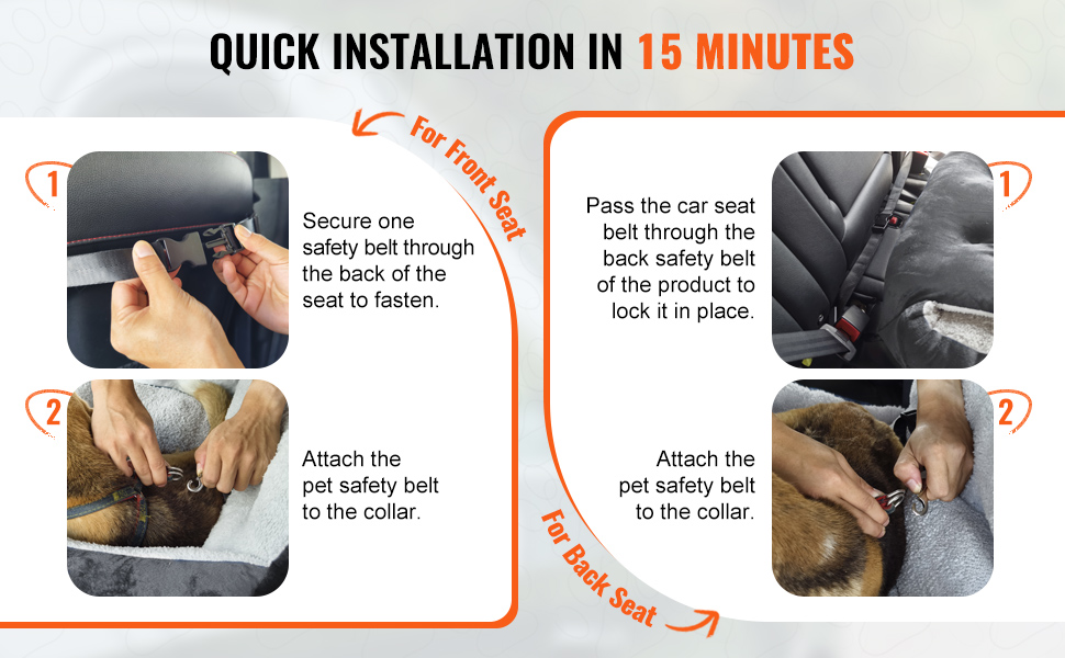 Obsahuje nastaviteľné bezpečnostné pásy a bezpečnostný popruh pre domáce zvieratá na bezpečné pripevnenie. Dostatočne jednoduchá inštalácia pre jednu osobu.