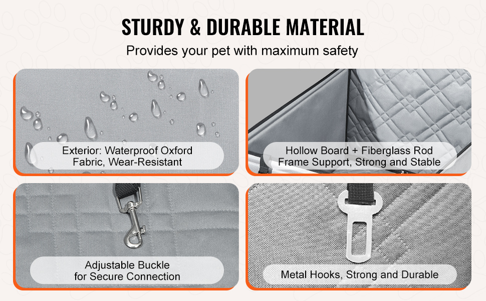 Vyrobené z nepremokavej oxfordskej tkaniny podopretej dutými doskami a tyčami zo sklených vlákien pre robustné sedadlo odolné voči opotrebovaniu. Táto autosedačka pre psov vyvýši vášho domáceho miláčika a znižuje úzkosť pri cestovaní.