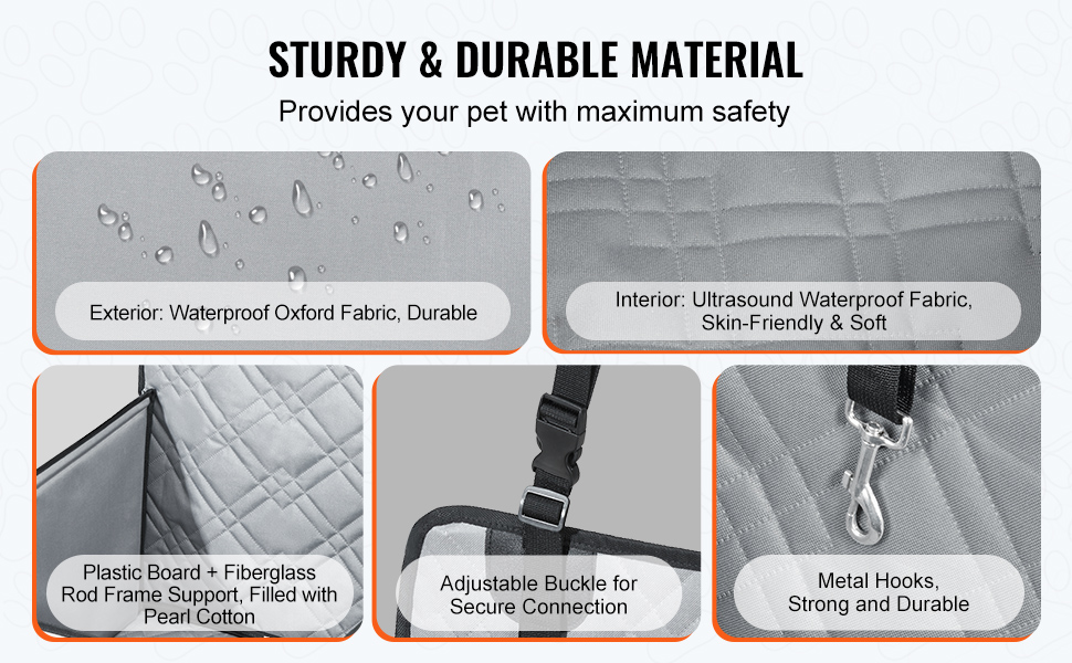 Vyrobené z poťahu z mäkkej textílie podopretého plastovými doskami a tyčami zo sklených vlákien pre robustné sedadlo odolné voči opotrebovaniu. Táto autosedačka pre psov vyvýši vášho domáceho miláčika a znižuje úzkosť pri cestovaní.
