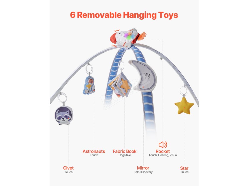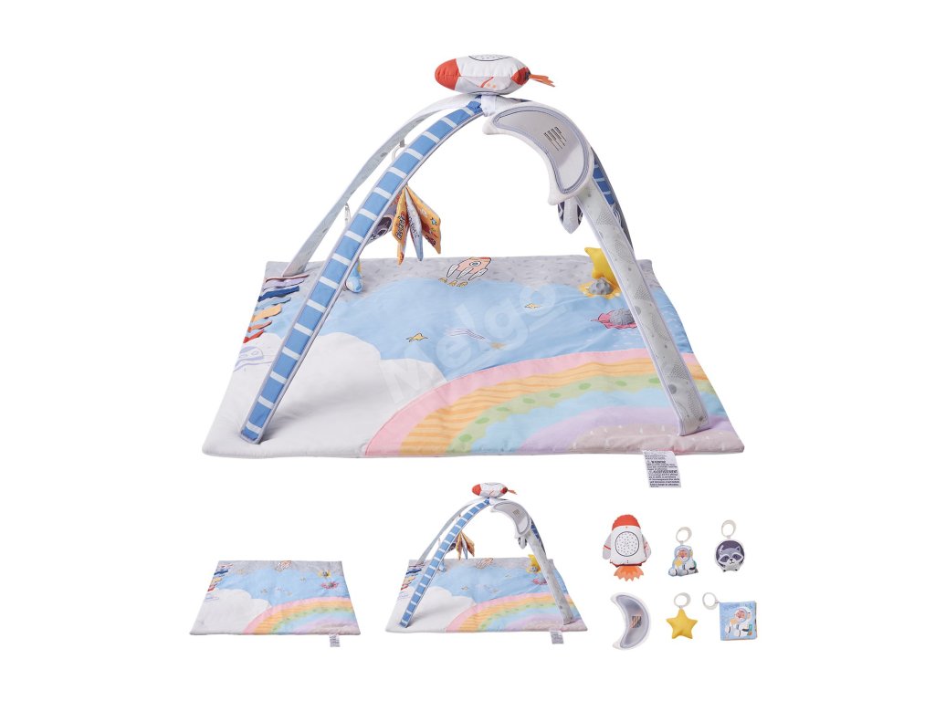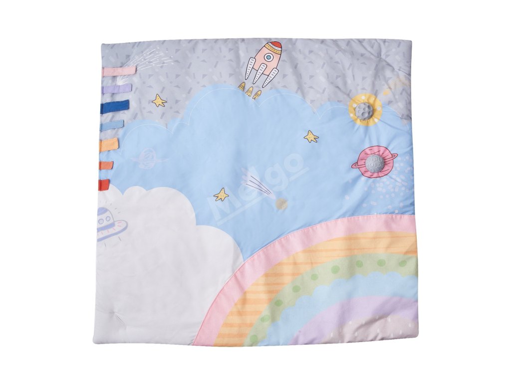 Detská hracia deka s 6 senzorickými hračkami a hudobnou raketou 0–18 m