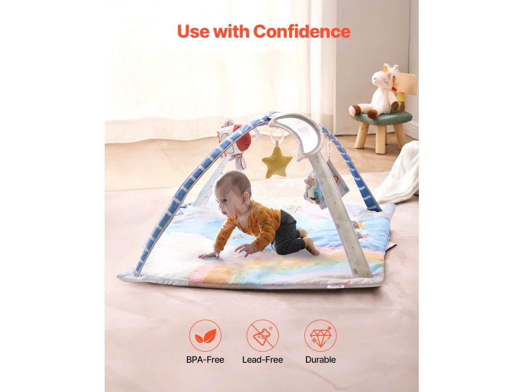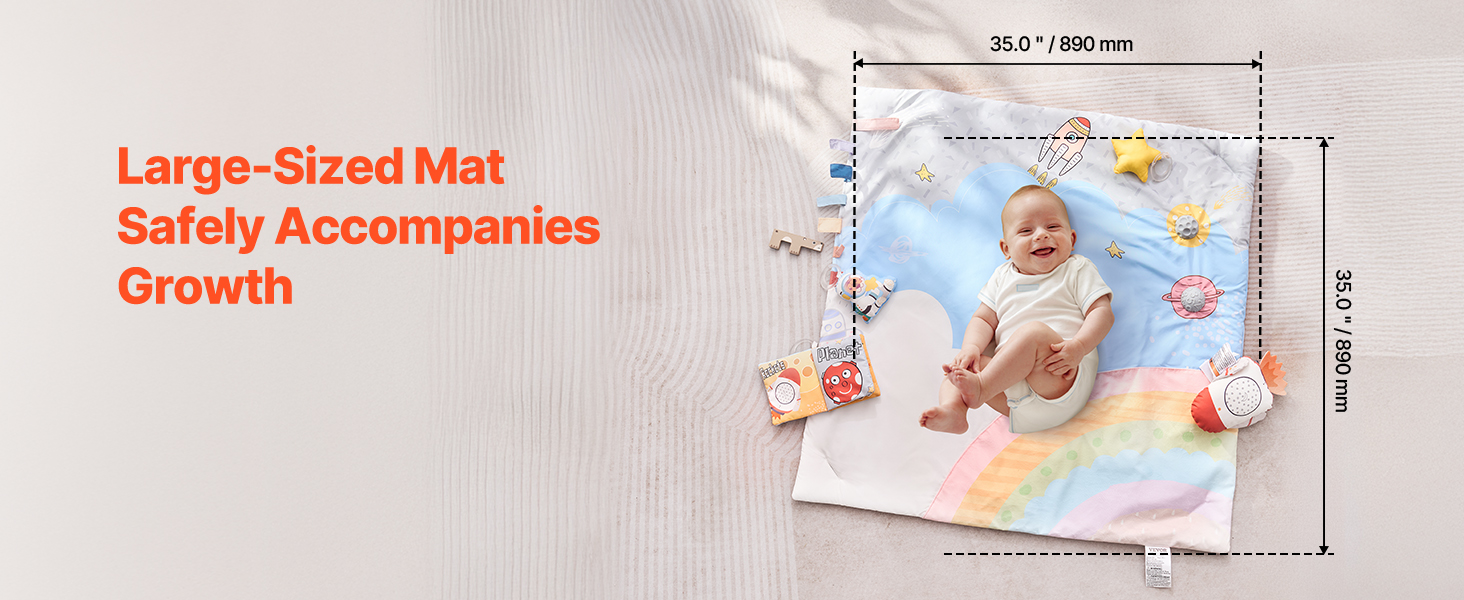 Táto veľká podložka na hranie na brušku s rozmermi 35,0" x 35,0" ponúka dostatok priestoru a bezpečne sprevádza rast vášho dieťaťa. Je vyrobená z materiálov bez obsahu BPA a olova, čím zaručuje zdravie a bezpečnosť vášho bábätka a poskytuje rodičom väčší pokoj.