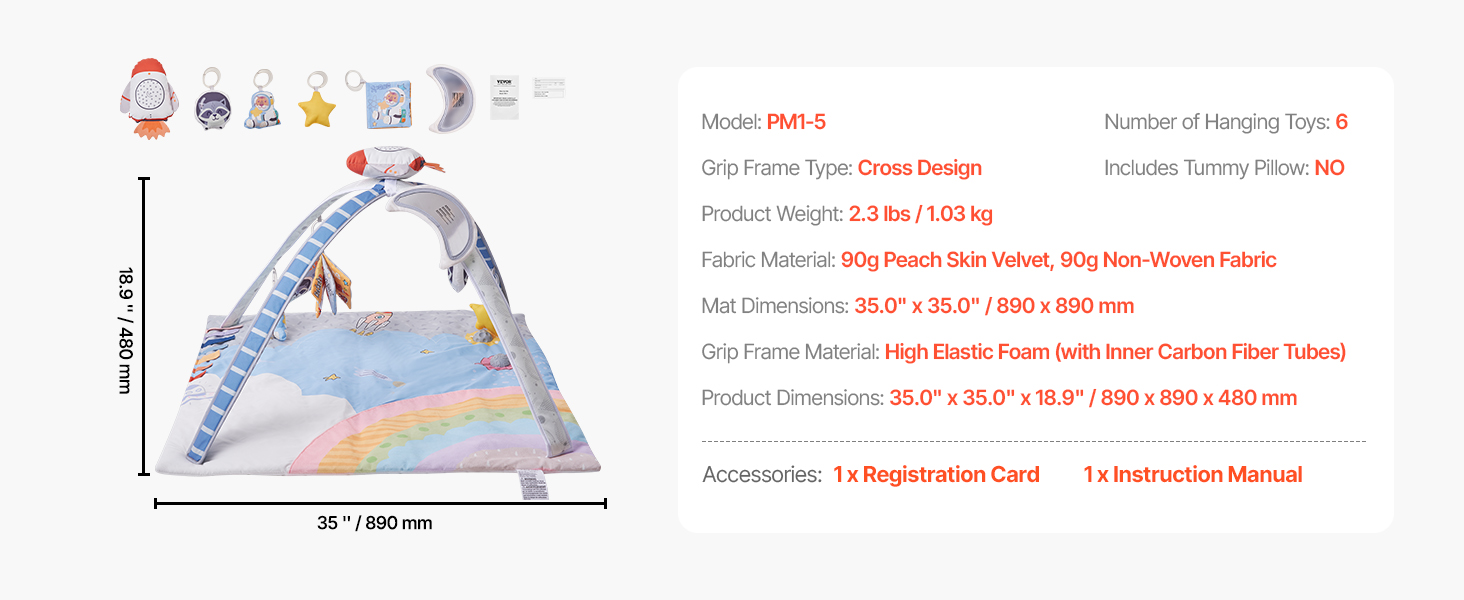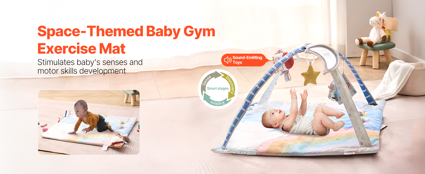 Naša podložka na hranie s vesmírnym motívom je nevyhnutná na rozvoj zmyslových a motorických schopností dieťaťa. 35.veľká podložka s rozmermi 0" x 35,0" a 6 senzorickými hračkami je ideálna pre bábätká v poznávacej fáze. Pomáha im vnímať, objavovať a skúmať svet, čím posilňuje kognitívne zručnosti a zdravý rast.