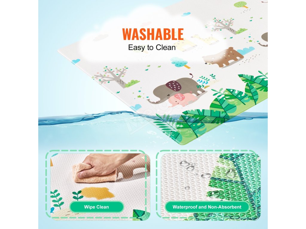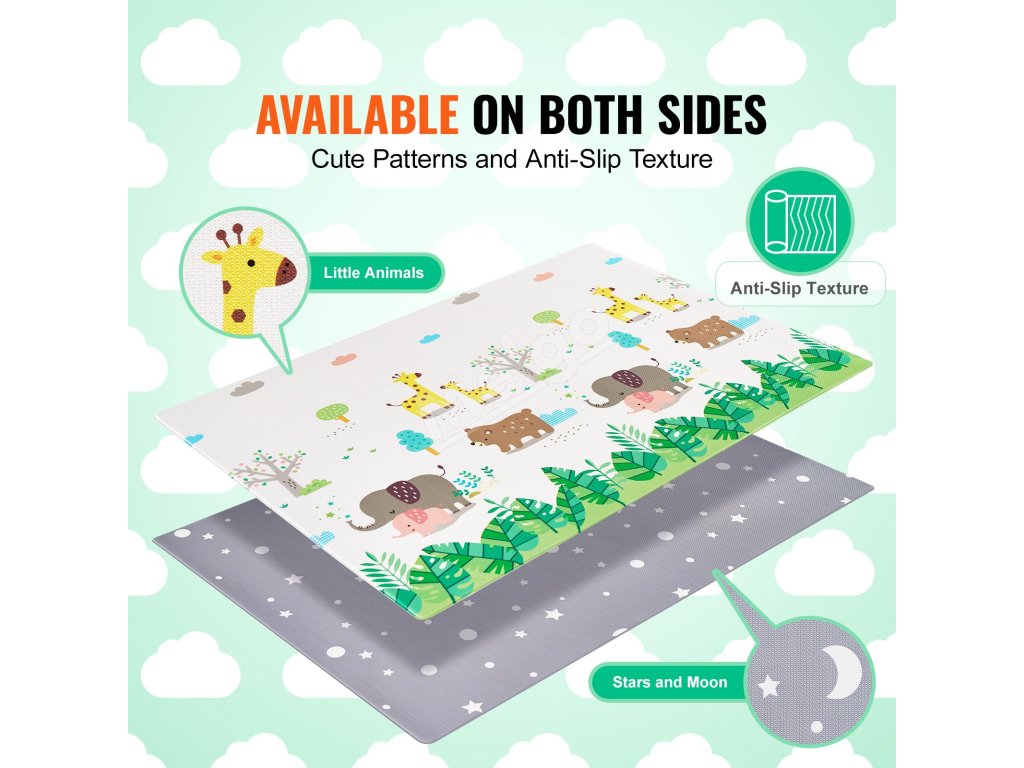 Na oboch stranách sú rozkošné vzory, ktoré ladia s interiérom vášho domova, s obojstrannými protišmykovými textúrami, ktoré zabraňujú pádom a pomáhajú vášmu dieťaťu bezpečne sa naučiť liezť a chodiť.
