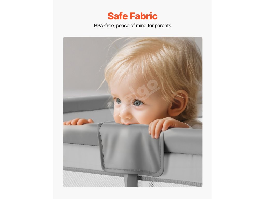 Bezpečnosť je na prvom mieste v každom detaile. Táto detská ohrádka sa dodáva s úložnou taškou na jednoduché prenášanie. Elastická bavlna proti nárazom ponúka mäkké polstrovanie pre väčšiu bezpečnosť. Navyše bezpečnostné dvierka s vonkajším zipsom pomáhajú zabrániť tomu, aby vaše dieťa vyliezlo von.