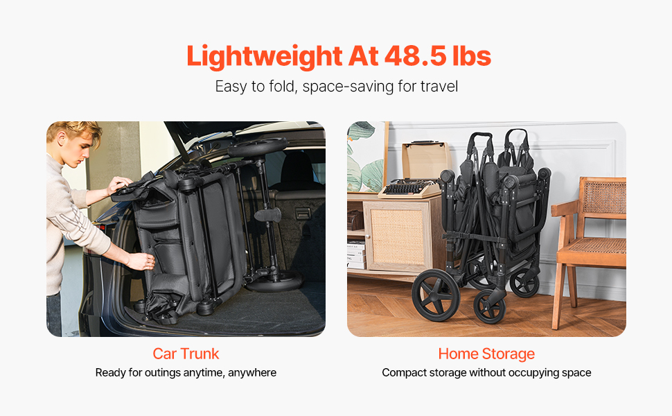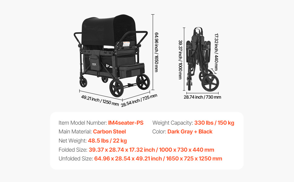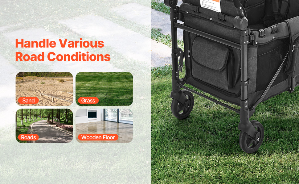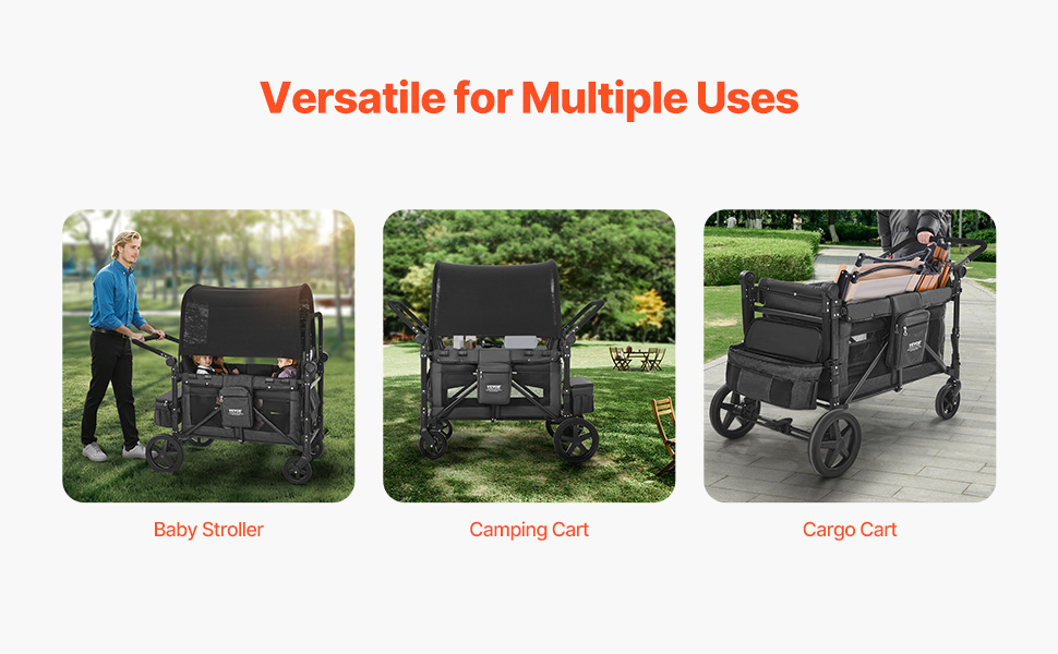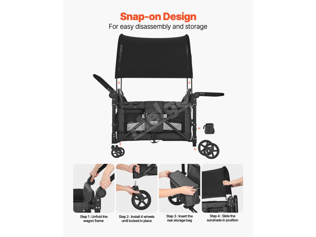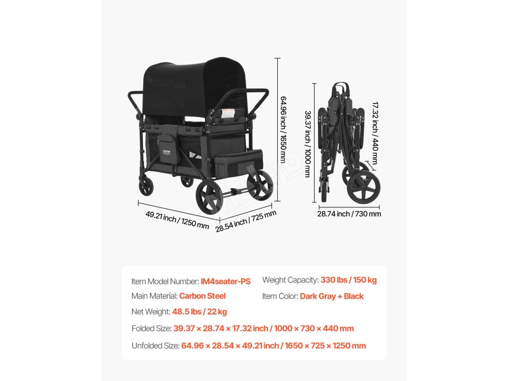 Užívajte si bezproblémový život a zažívajte zábavné dobrodružstvá so svojím dieťaťom! Náš vozík pre 4 deti je skladací a prenosný, pohodlne sa zmestí do kufra auta alebo domov. Vďaka rámu z uhlíkovej ocele a kolesám odolným voči opotrebovaniu, ktoré absorbujú nárazy, sa prispôsobí rôznym terénom.