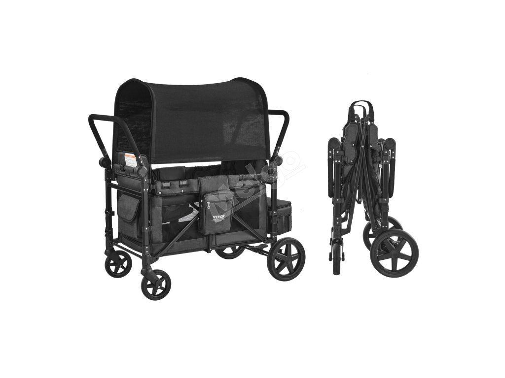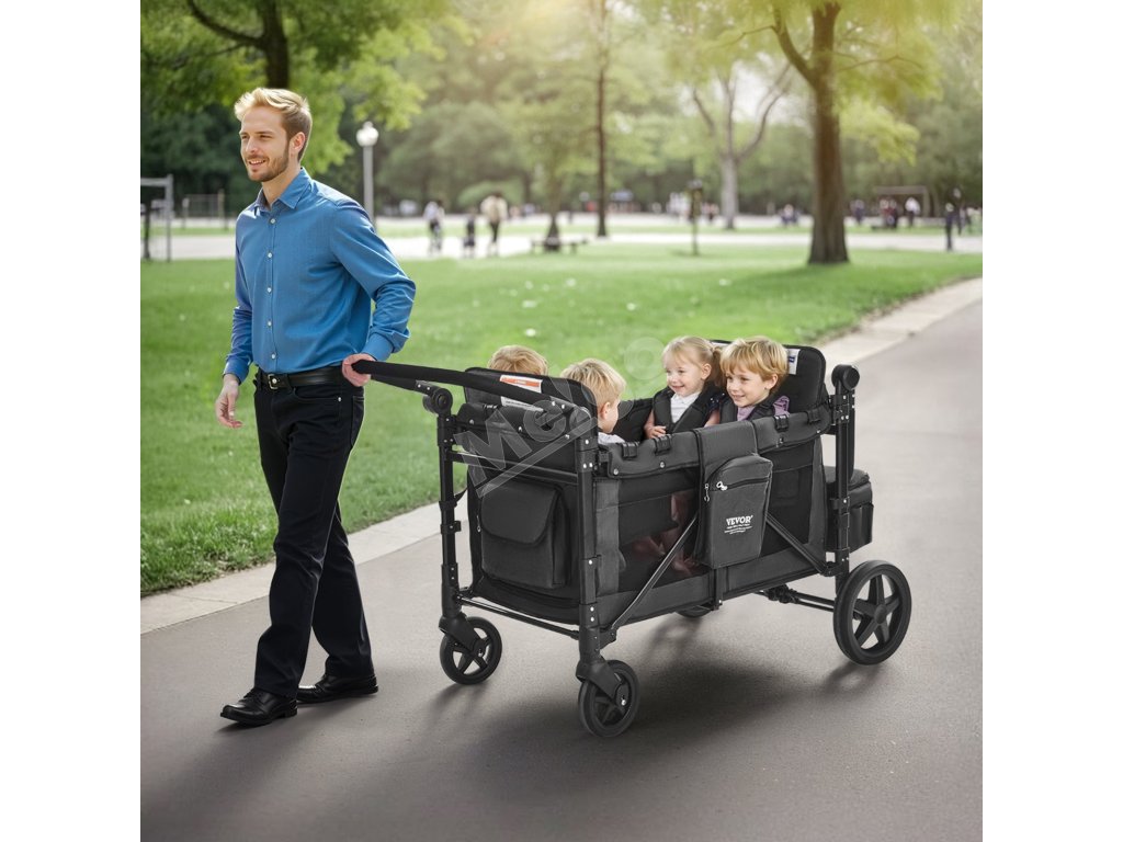 Voziček pre 4 deti, skladací, nastaviteľná rukoväť, nosnosť 330 lbs