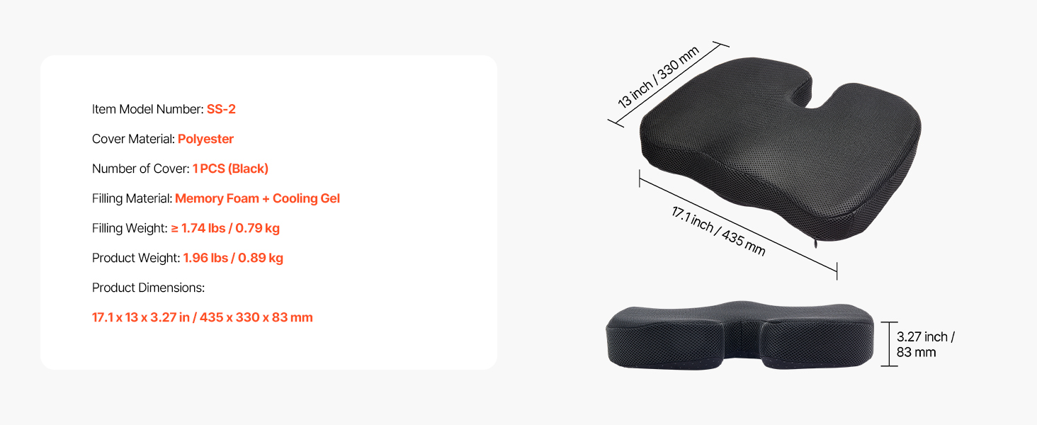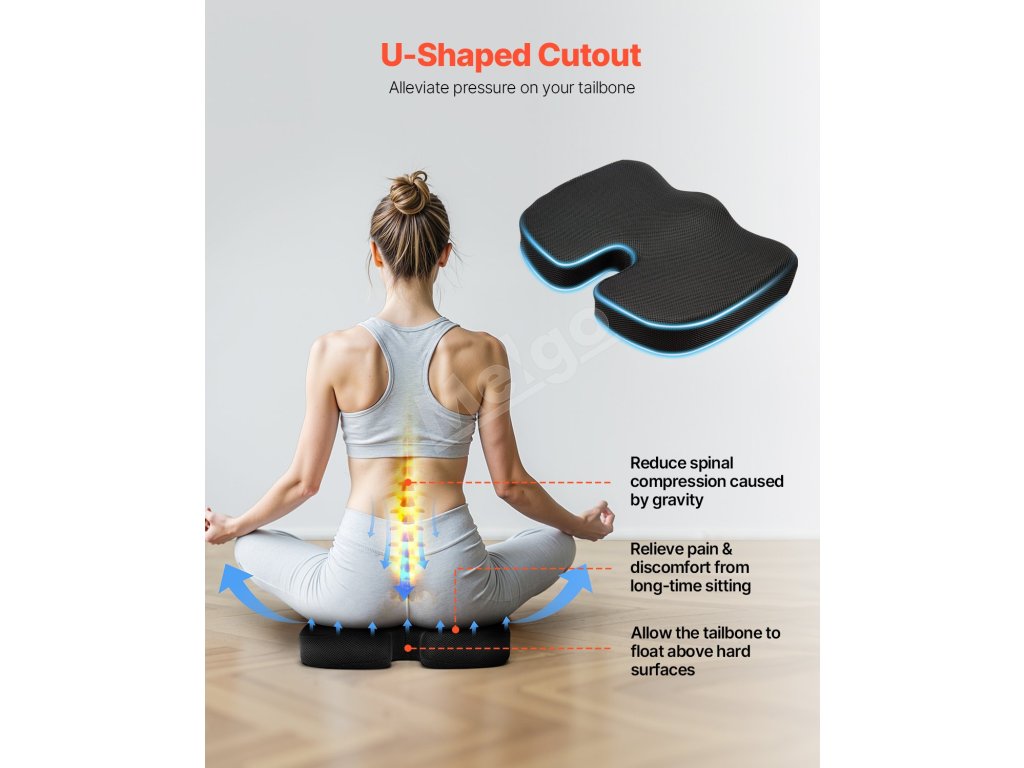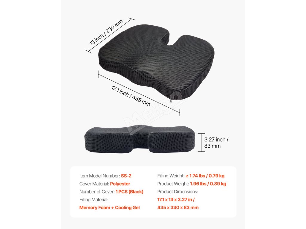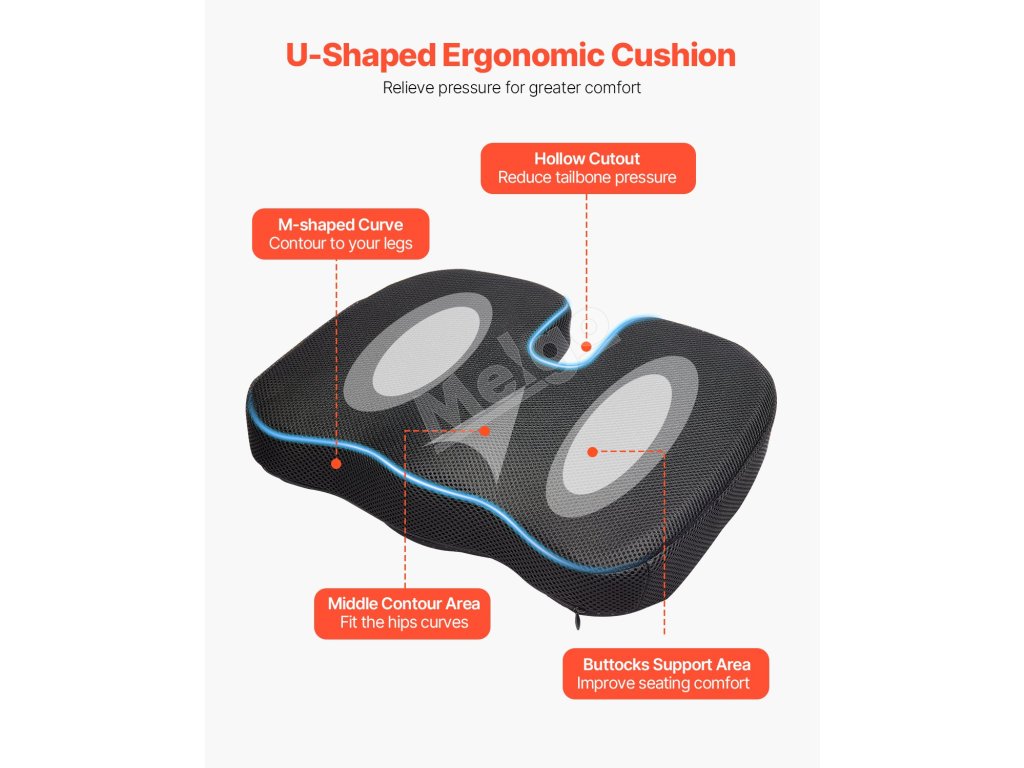 3 hlavné ergonomické konštrukcie pre väčšie pohodlie - výrez v tvare písmena U znižuje tlak na chrbtovú kosť a chráni vašu chrbticu, materiál z pamäťovej peny a chladiaceho gélu pre chladenie a podporný komfort a výplňový materiál ≥ 1,74 lbs ponúka hustejšie a pohodlnejšie sedenie.